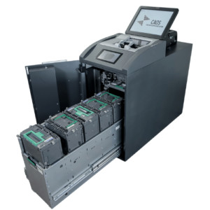 DIAMANTE JR is CIMA’s high-capacity back-office note recycling solution for retailers or venues with higher note volume requirements. Made up of our AST9000 note recycler, the DIAMANTE JR solution has all the functionality you would expect from a complete high-capacity back-office cash recycling solution. Driven by our flexible CAOS device operating system, retailers can customize how the system works specifically in their environments. The AST9000 note recycler utilizes cassettes for recycling. Each cassette can store up to 3,400 notes of a single denomination making it ideal for stores or environments where cash volumes are extremely high. The AST9000 is highly flexible with the option of dual denomination recycling cassettes. Surplus notes are stored in a dedicated deposit-only cassette which can be emptied by authorized staff or CIT operator.