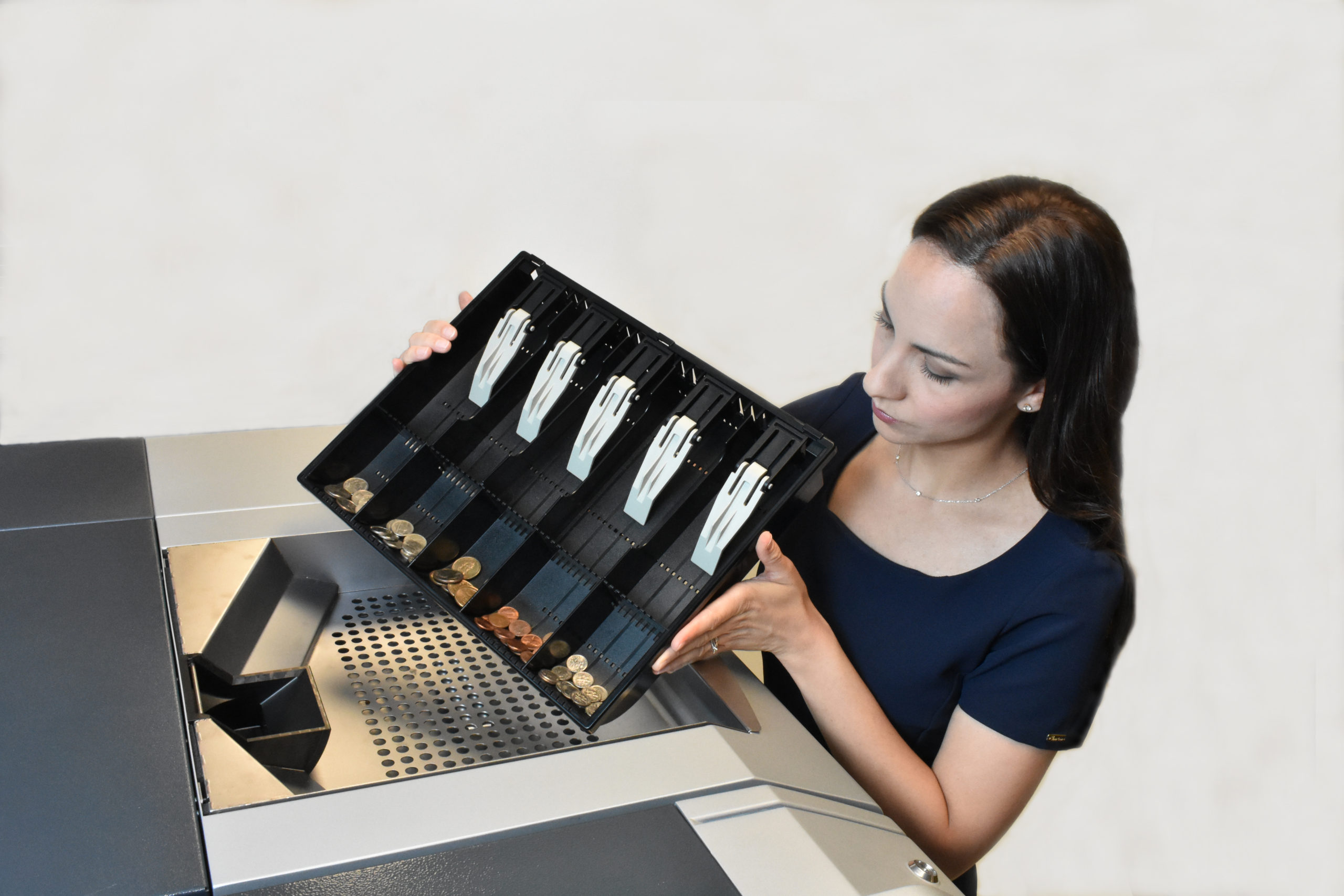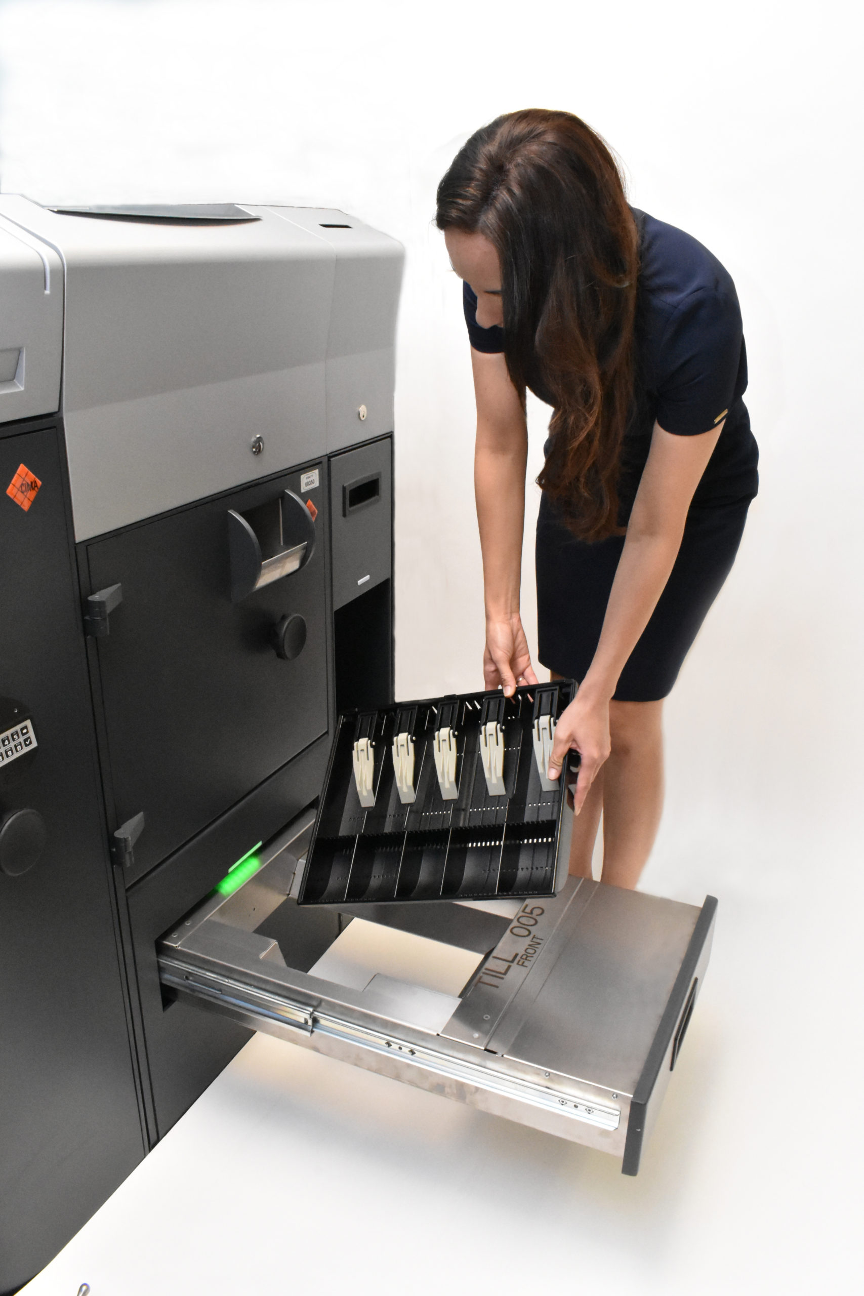 DIAMANTE is CIMA’s high capacity back-office note and coin recycling solution for retailers or venues with higher note and coin requirements. Made up of our AST9000 note recycler + CDS803 coin recycler, the DIAMANTE solution has all the functionality you would expect from a complete high capacity back office cash recycling solution. Driven by our flexible CAOS device operating system, retailers can customize how the system works specifically in their environments. The AST9000 note recycler utilizes cassettes for recycling. Each cassette can store up to 3,400 notes of a single denomination making it ideal for stores or environments where cash volumes are extremely high. The AST9000 is highly flexible with the option of dual denomination recycling cassettes. Surplus notes are stored in a dedicated deposit only cassette with can be emptied by the CIT operator.